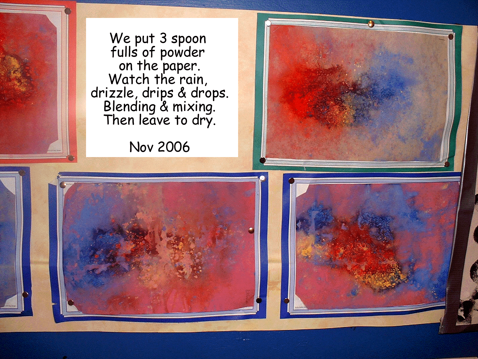 Guest Posted February 17, 2009 Posted February 17, 2009 When we explored colour we made a maypole using coloured plastic curtain ribbons and a cutlery holder with rotating top, and another one with me as the 'pole'. Rain pictures are interesting, brings in conversations about the weather, how colours can be merged together in a different way. (this idea wasn't planned, when it was raining one day I just thought What would happen if....?) Sing the rainbow song using Makaton signs. Sorry not any role play ideas but like the one about an artists, maybe expand to have an 'Art Gallery' get the children to compose the description for each picture (adult to write), maybe add a price, look at famous artists etc. Have fun. Peggy